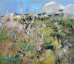 Viti Eugenio (Napoli 1881 - 1952) Paesaggio olio su cartone 38,5x49 firmato in basso a destra: Eugenio Viti