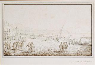 Scuola del XIX secolo Pescatori seppia su carta cm 13x16,7