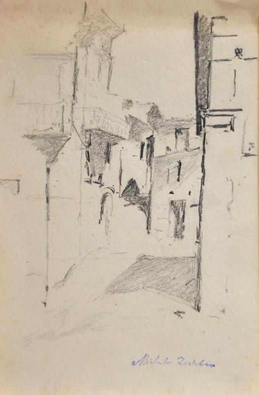 Casciaro GiuseppeCasciaro Giuseppe (Ortelle, LE 1863 - Napoli 1941) Impressione a Nusco pastelli su carta cm 16x12 firmato e datato in basso a sinistra: G. Casciaro 1909 a tergo timbro Giuseppe Casciaro, NA