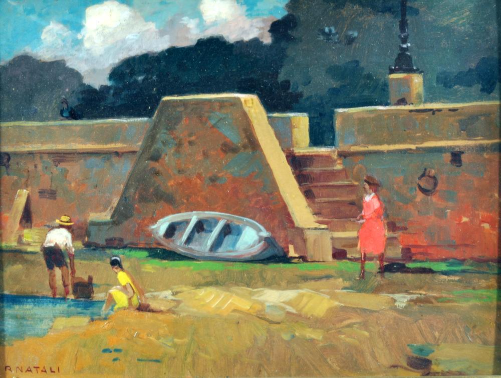 Natali RenatoNatali Renato (Livorno 1883 - 1979) Banchina al mare olio su tavola cm 30x40 firmato in basso a destra: R. Natali