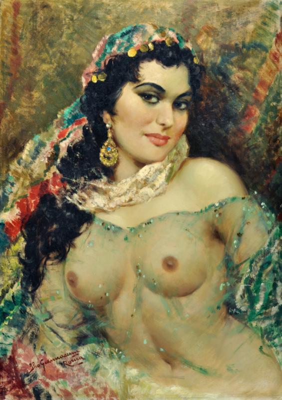 Giannaccini IlioGiannaccini Ilio (Roma 1897 - 1968) Odalisca olio su tela cm 70x50 firmato e iscritto in basso a sinistra: Ilio Giannaccini Roma