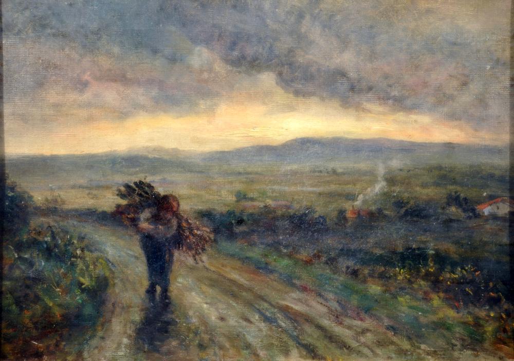 Pellicciotti TitoPellicciotti Tito (Barisciano (AQ) 1871 - 1950) Ritorno dai campi olio su tela cm 35x68 firmato in basso a destra: Pellicciotti