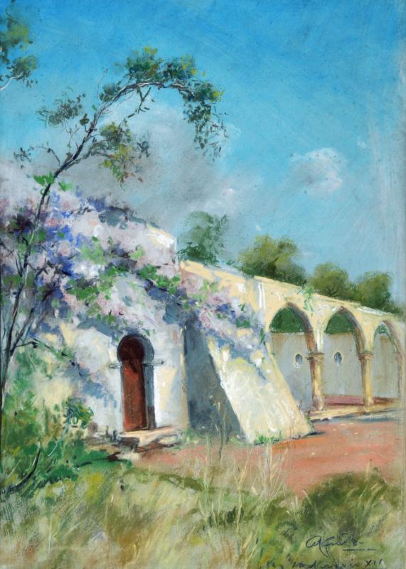 Duclere TeodoroDuclere Teodoro () Villa Tasso a Sorrento olio su carta rip su tela cm 43x33 firmato in basso a sinistra: Duclere