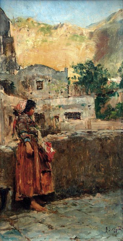 Scoppetta PietroScoppetta Pietro (Amalfi, Sa 1863 - Napoli 1920) Amalfitana olio su tavola cm 30x16,5 firmato in basso a destra: P.Scoppetta