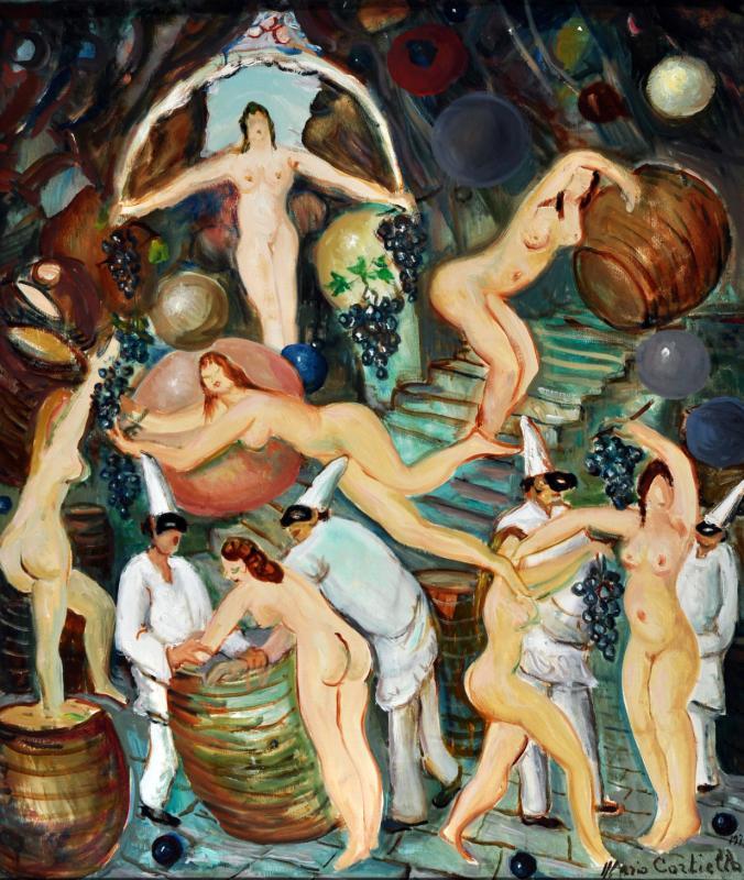 Cortiello MarioCortiello Mario (Napoli 1907 - S.Sebastiano al Vesuvio,NA 1991) Vendemmia delle muse olio su tela cm 60x70 firmato e datato in basso: Mario Cortiello