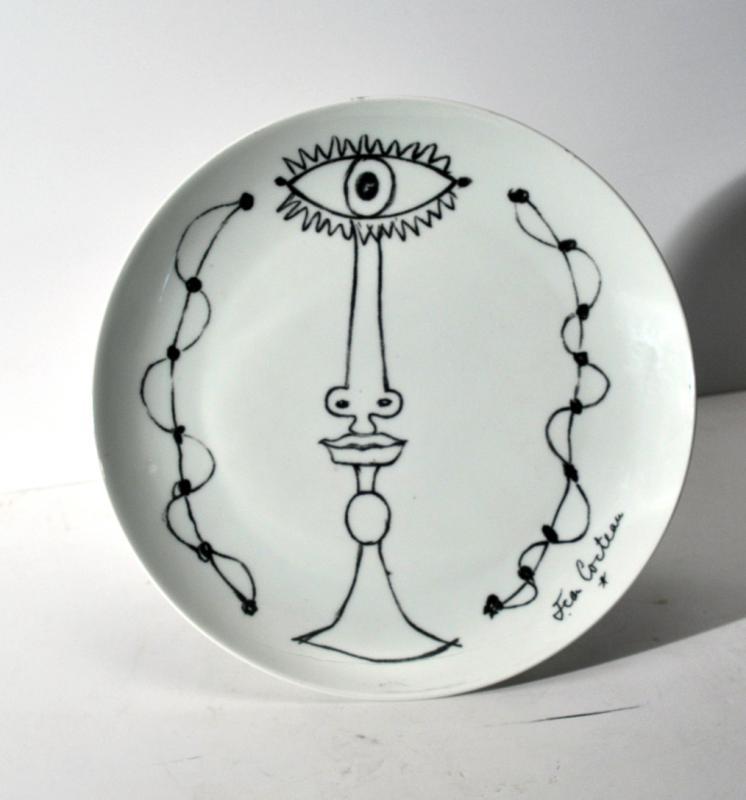 Cocteau JeanCocteau Jean (Maisons, Laffitte 1889 - Paris 1963) Volto piatto in maiolica d. cm 25