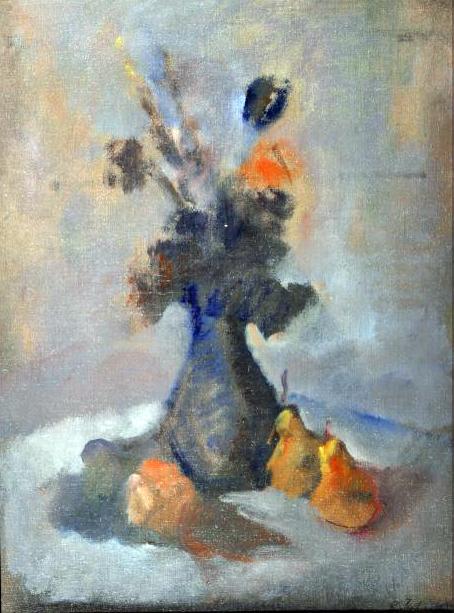 Taliercio RiccardoTaliercio Riccardo (Barano-Ischia 1905 - Napoli 1992) Natura morta olio su masonite cm 53,7x43,5 firmato in basso a destra: R. Taliercio a tergo cartiglio Galleria Mediterranea,Napoli