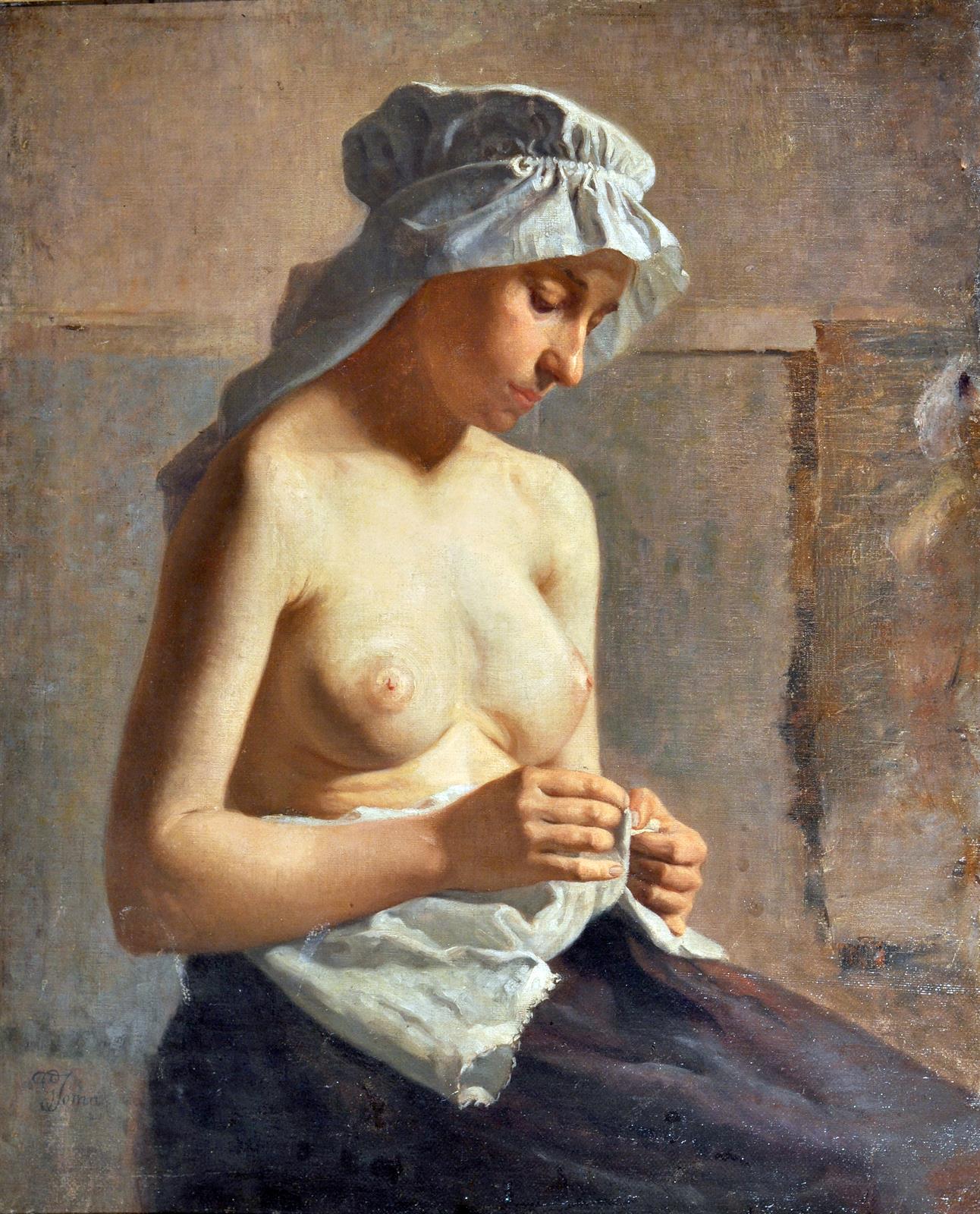 Quello che fa differire maggiormente le due piccole tele è la ripresa del paesaggio in diverse ore del giorno, un tramonto “maturo” per il nostro e un’algida alba per l’altro, che rendono difformi effetti atmosferici e diversità nelle ombre portate; inoltre nella teletta ischitana non sono rappresentate la figura sotto il pergolato, la donna in primo piano e la piccola barca nel lago. Proprio il confronto tra le due opere rende evidente il contributo del pittore belga alla scuola dei posillipisti, che lega il suo nome ad una produzione volta alla ripresa e all’analisi degli elementi atmosferici sul paesaggio, resa attraverso colori bruni stesi con pennellate liquide; i volumi con cui sono costruite le figure sono costituiti da solidi geometrici giustapposti per creare personaggi inscindibili dal nucleo paesaggistico. L’opera ha inoltre un valore documentario importante, unitamente alle altre vedute del Lago d’Ischia (cfr. inoltre l’Hackert, 1792, Caserta Palazzo Reale), perché come è noto dal bacino naturale verrà realizzato nel 1853, il porto dell’isola, lavoro promosso dal re Ferdinando II e salutato con toni entusiastici dal Carelli in una pubblicazione del 1858.