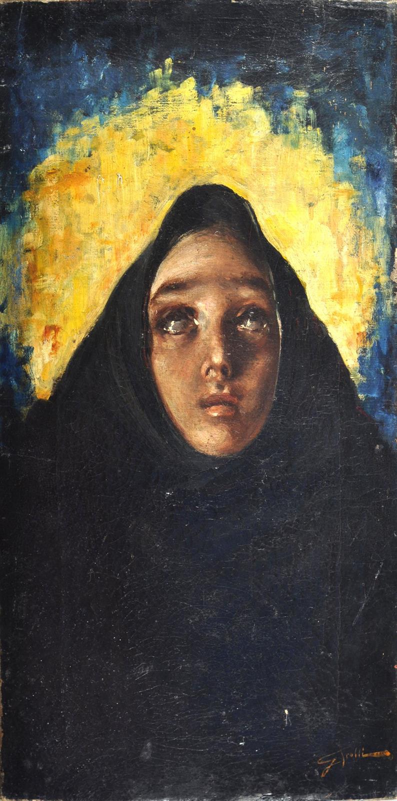 L’opera proposta in asta afferisce probabilmente a questo filone, basandosi questa ipotesi principalmente sull’abbigliamento delle figure in parata, molto simile a quanto indossato dai gruppi giovanili sovietici, nonché su quello di singole presenze nel pubblico che, ricollegandosi poi alle figure che popolano le scene di genere di cui s’è scritto sopra, è colorato di significativi e simbolici particolari vermigli.