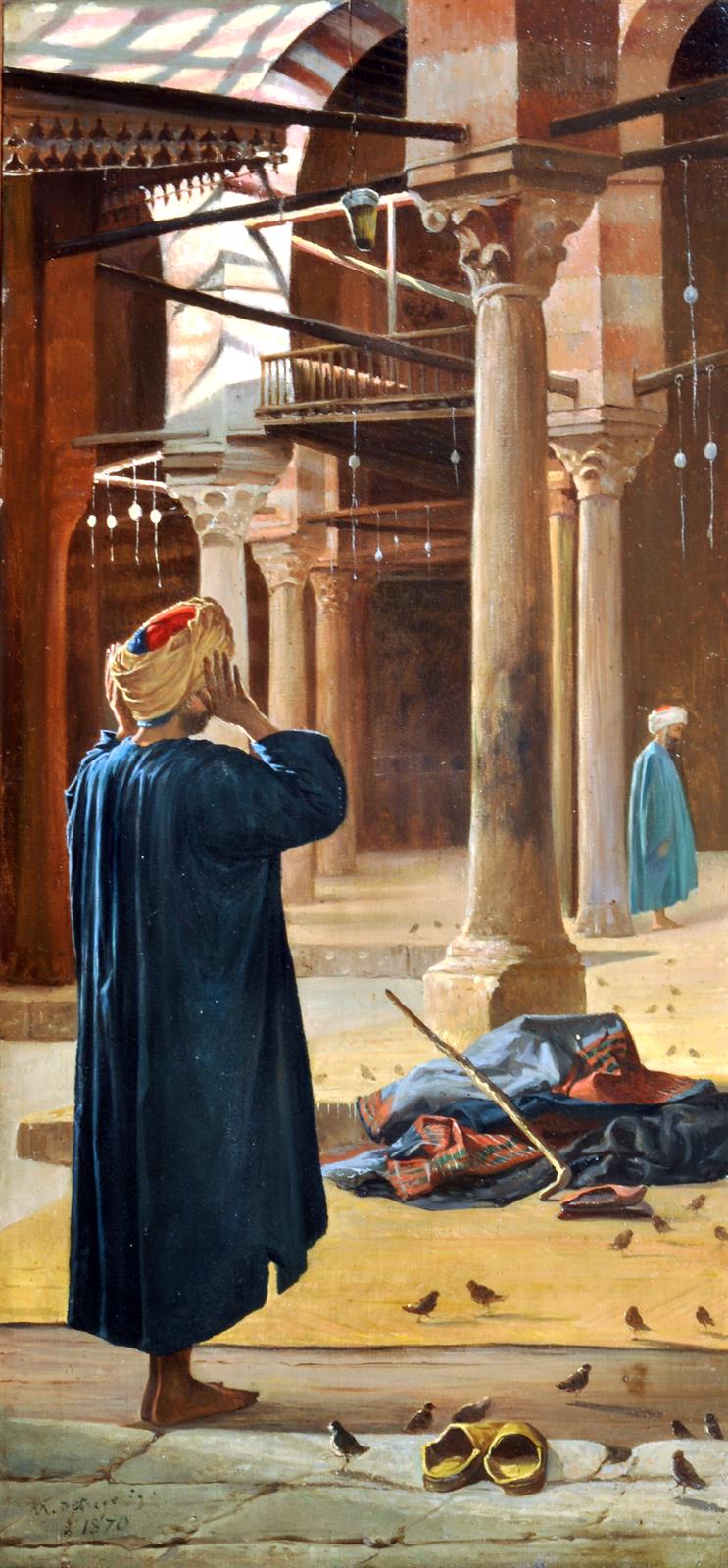 Il nome di Alessio Issupoff (italianizzazione di Aleksej Vladimirovic Isupov) viene tipicamente associato ad una ricca serie di scene orientali realizzate rielaborando non, come si potrebbe immaginare, visioni dell’Africa settentrionale (com’era uso nel diciannovesimo secolo) ma propriamente spunti colti nelle steppe di Russia e del Turkestan, ove l’artista, figlio d’un pittore di icone sacre e formatosi accademicamente a Mosca, viaggiò nel corso del proprio servizio di leva, periodo cui evidentemente egli volle tornare almeno con la fantasia (e non senza una certa nostalgia) allorché, più vecchio e malato, si stabilì in Italia per curarsi, finendo poi per non lasciare mai più il paese.
