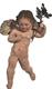 • Puttino in terracotta policroma con foglia in argento, h cm 15,5