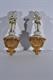 Angeli in porcellana dipinta con base lignea oro a foglia, h cm 27