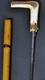 Bastone animato in bambù a nodi regolari, ghiera in corno contenente lo scatto per l’impugnatura, in corno, che contiene uno stocco a sezione romboidale finemente incisa