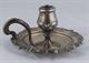 Bugia in argento 800 sbalzato e cesellato, decorato con foglie, poggiante su piatto circolare con bordi decorati, gr 135
