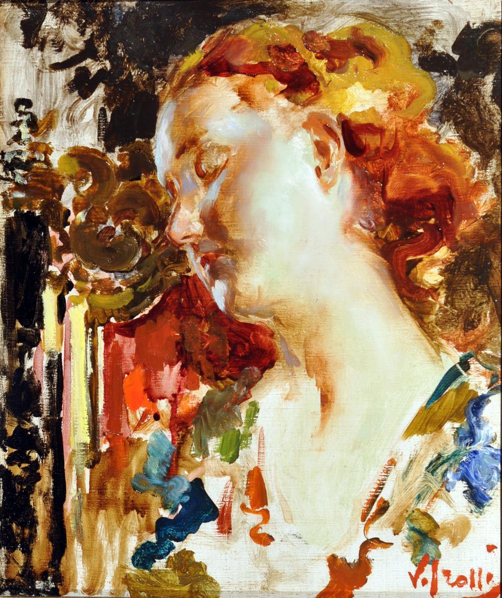 Irolli Vincenzo (Napoli 1860 - 1949) Profilo femminile olio su tela, cm 32x27 firmato in basso a destra: V. Irolli