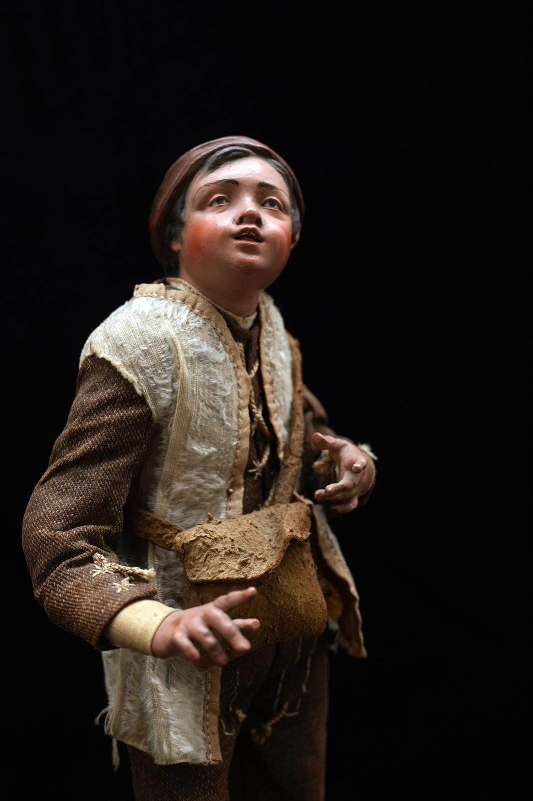 Ragazzo rustico attr. L. Moscacon coppola in terracottah cm 23accessori: cestino con mele cotogne, tracolla in pelleNapoli XVIII - XIX secolo