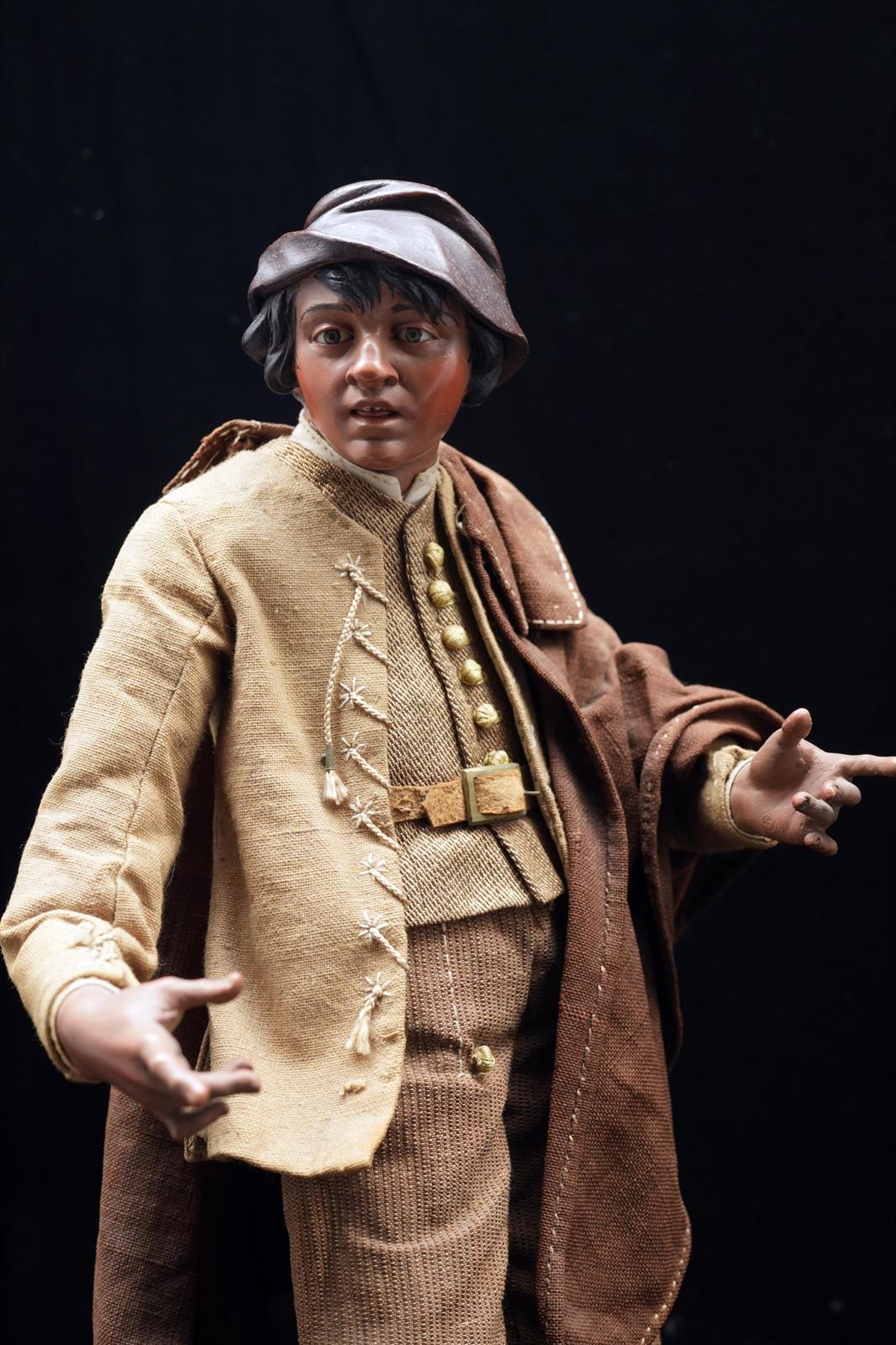 Ragazzo rustico di . L. Mosca(in attività dal 1760 al 1789)con berretta in cretadalla scena "L'Annuncio ai pastori"h cm 29,5Provenienza: coll. V. Catello; coll. S. Catello; coll. privata, NapoliEsposizioni: Venezia, 1927Bibliografia: Figure presepiali napoletane dal secolo XIV al secolo XVIII. Catalogo della mostra,Napoli 1970, tav. 64