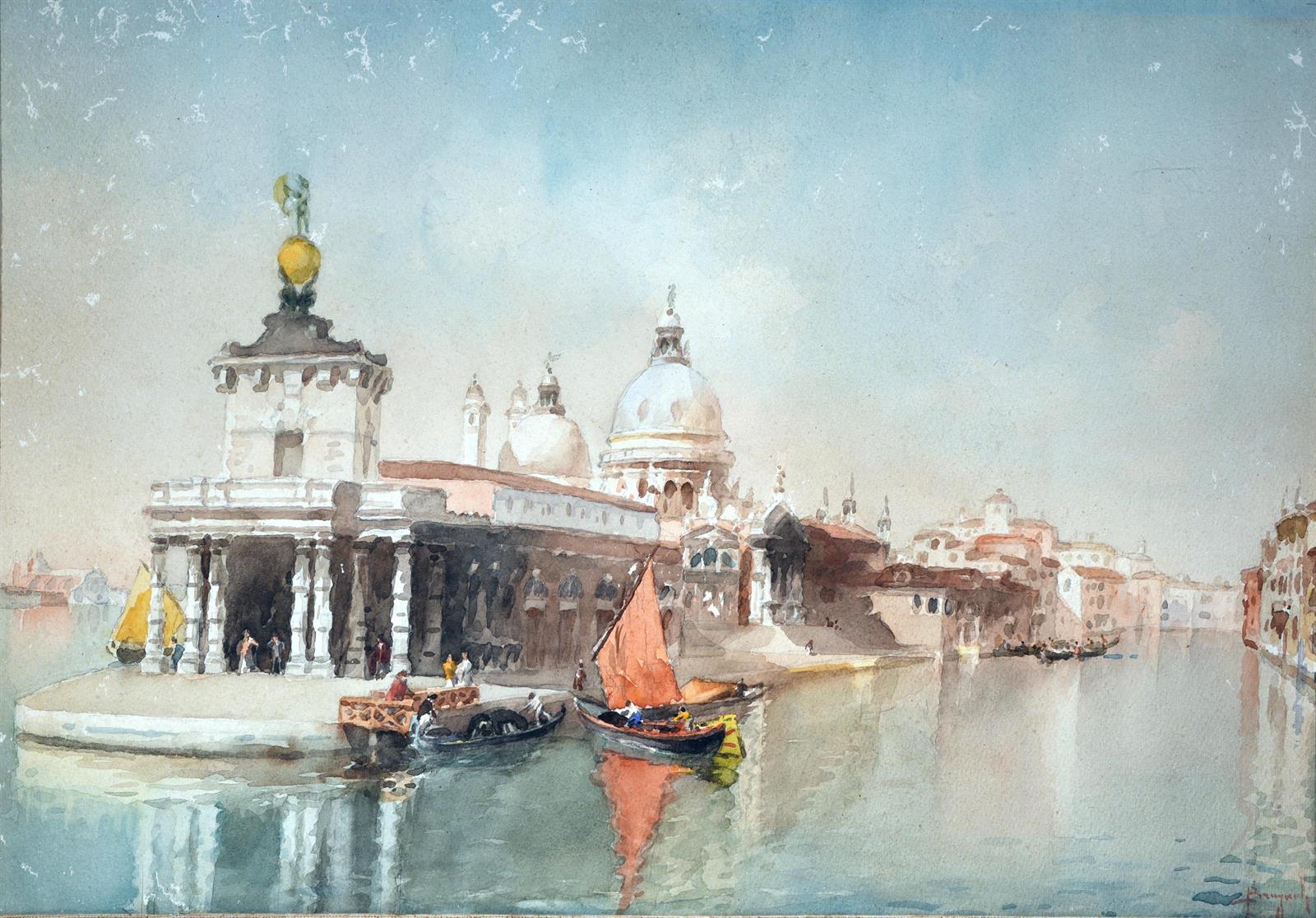 Brugnoli Emanuele (Bologna, 1859 - Venezia, 1944)Basilica di S. Maria della Salute, Veneziaacquerello su carta, cm 35,5x49firmato in basso a destra: Brugnoli