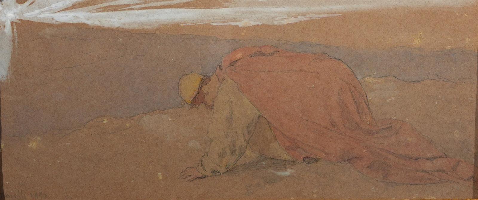 Morelli Domenico (Napoli 1823 - 1901)In preghiera acquarello su carta, cm 12x25 firmato e datato in basso a sinistra: Morelli 1878