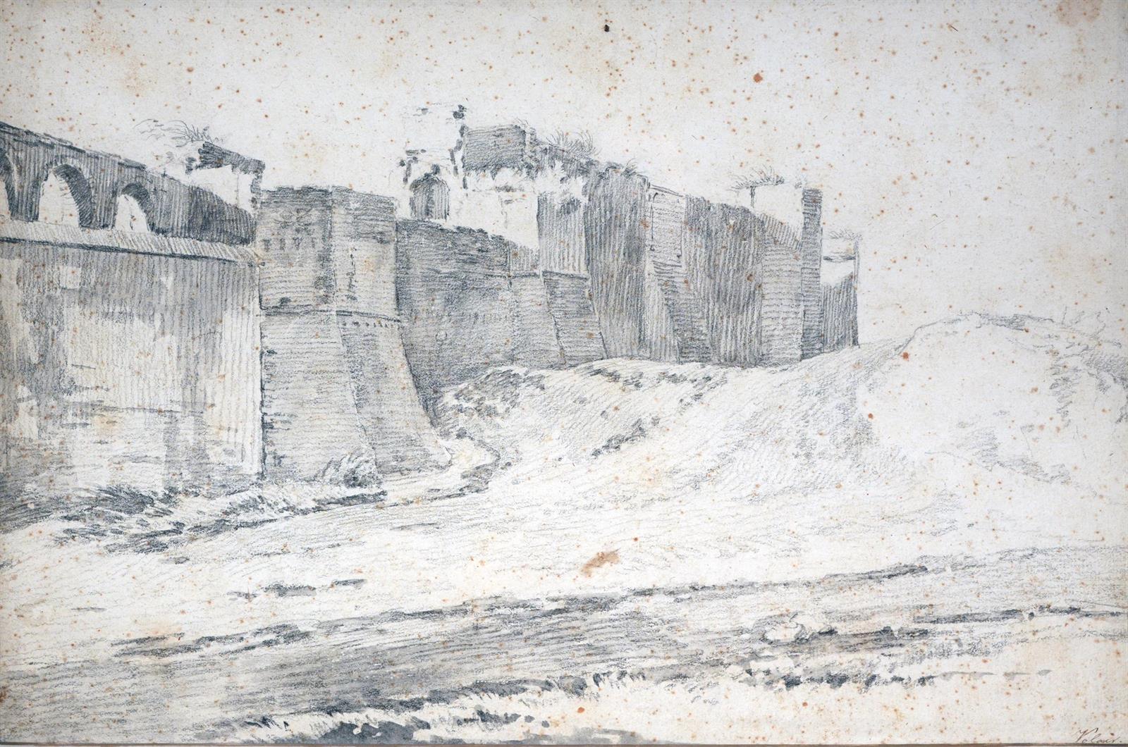 Volaire Pierre Jacques (1729 - 1799)Paesaggio antico con castellomatita su carta, cm 25x38,5firmato in basso a destra: Volaire