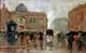 Scuola del XX secolo Sotto la pioggia olio su tavola cm 18x30